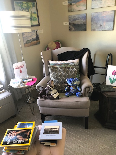 The facility director announced on our monthly family zoom call last month that she has been working in the kitchen because they have no chef. The director seemed overwhelmed, so I didn’t make any comments. Then the receptionist quit, so the activity directors have been taking shifts at the main desk, as well as leading activities. In some ways the residents have been enjoying this change because they are kept together more in the lobby so that the directors can handle both duties at the same time. It is interesting for the residents to see each other and be out of their rooms more, even though there isn’t much interaction.