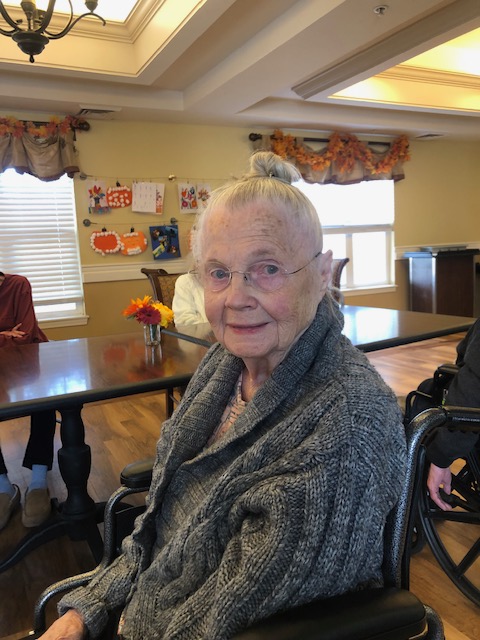 2. She loves to have company! She is usually good at introducing us to her friends at the table and will try to include everyone the best she can. I have noticed that oftentimes she will find something to grab onto to turn it into a conversation like my husband’s hockey sweatshirt, or she is pleased that I brought my “boyfriend” to come visit her and the ladies.